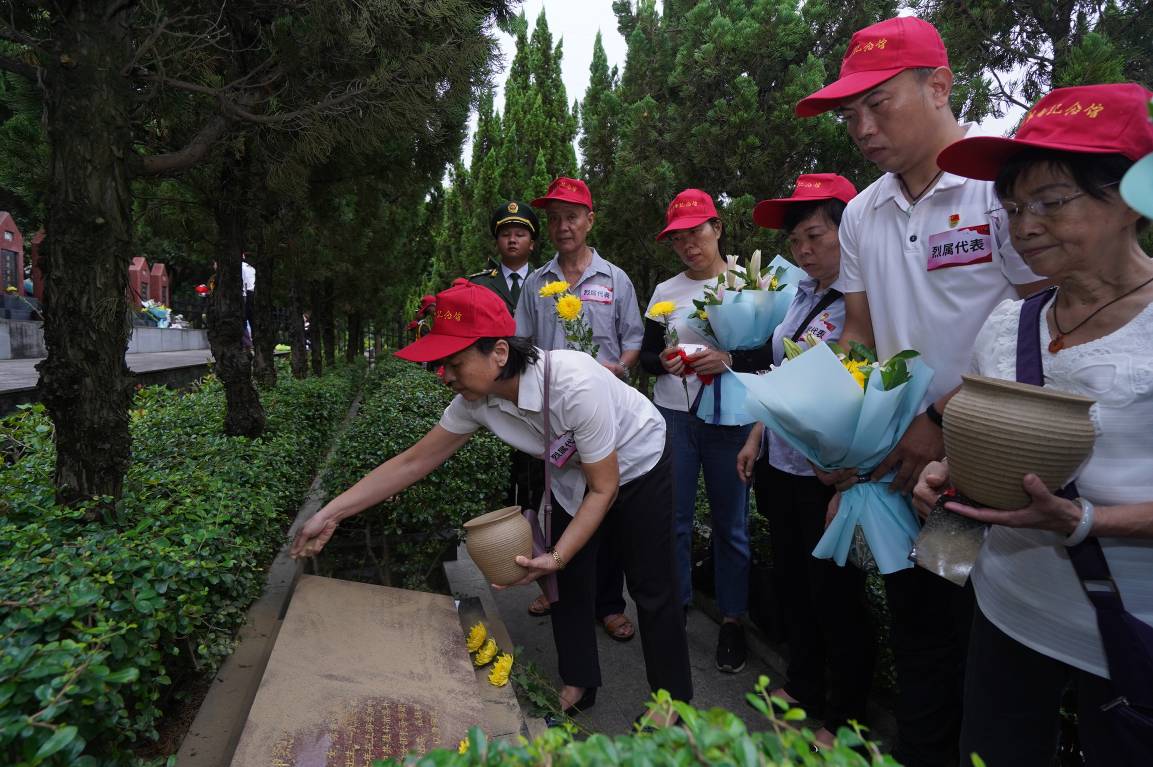 烈属在烈士墓园为烈士洒故土